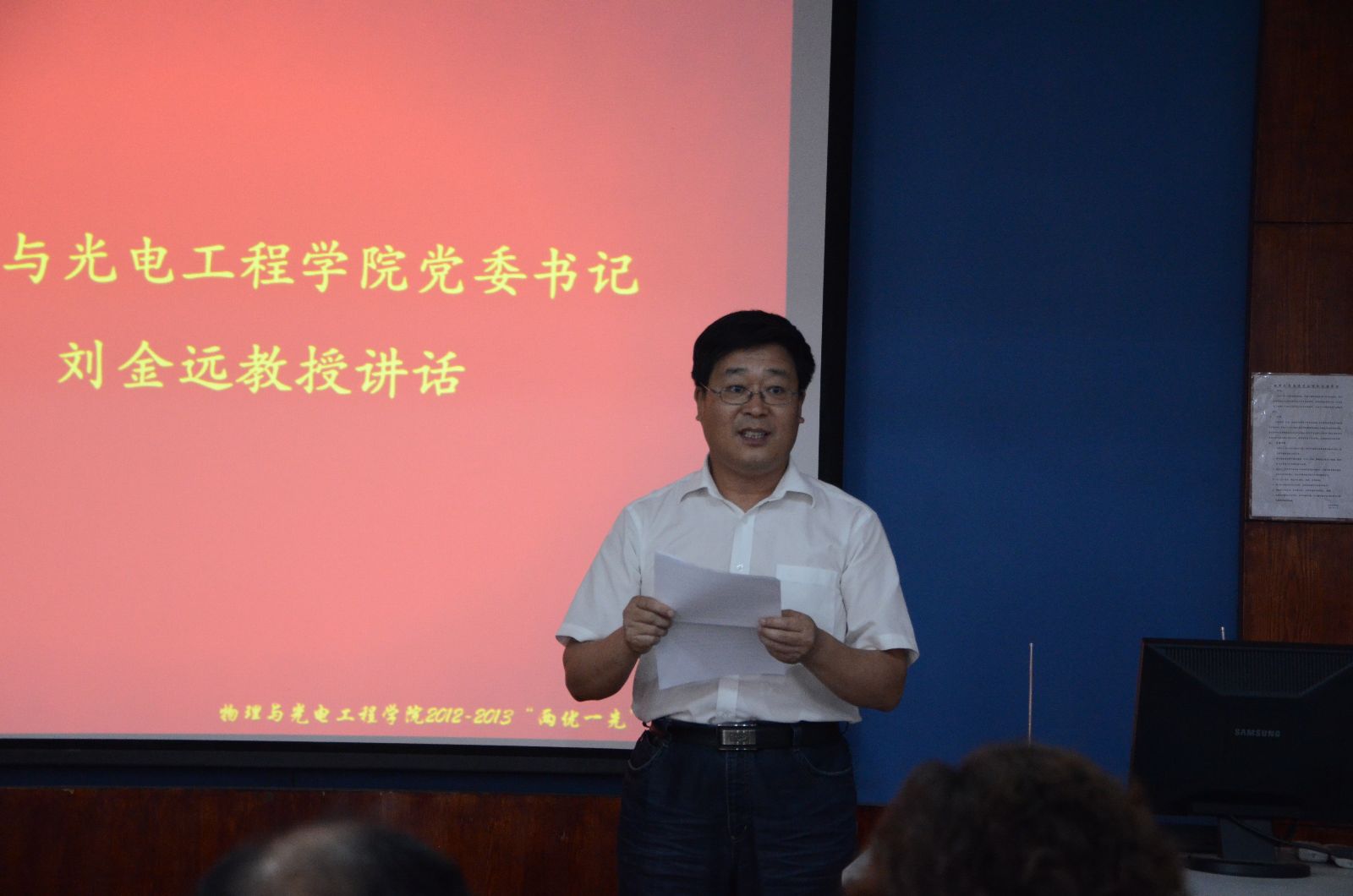 学院党委书记刘金远教授在最后的讲话中总结了学院党委过去一年的工作,充分肯定了基层党支部和广大党员同志在这一学年的积极表现,鼓励全体党员同志谦虚谨慎,再接再厉,发挥模范带头作用,为学院发展做出更大的贡献。依据中共中央部署启动的党的群众路线教育实践活动,刘金远同志援引习近平主席按照“照镜子、正衣冠、洗洗澡、治治病”的总要求,对各级基层党组织及全体党员同志提出了殷切期望。