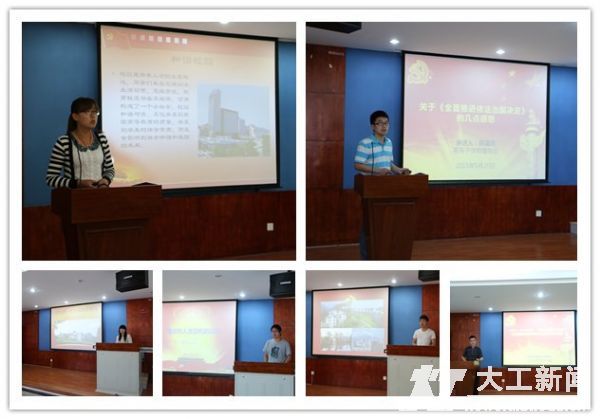 在聘任仪式结束后,首次“研究生党员上讲台”示范观摩环节正式开始。按照学院党委制定、下发的《物理与光电工程学院2015-2016学年“研究生党员上讲台”实施方案》要求,首次观摩交流活动由学院研究生党总支委员以及各党支部书记等6名党员上讲台讲党课。讲课主题由端正入党动机到如何做一名优秀的共产党员;从发扬传统文化到和谐校园建设;从新农村建设再到依法治国。其中,邵宇辰同志从最近央视热播的《王大花的革命生涯》解读了剧中人物及我们身边同学入党动机的变化及原因,并就如何引导同学端正入党动机进行了分析;韩道满同志对全面依法治国分享了自己的几点收获,他深刻领会到社会主义法治必须坚持党的领导,党的领导必须依靠社会主义法治,并号召每一位党员从自身做起,遵法守法,并带动自己周围的同学遵纪守法,按照规章制度办事;滑跃和王鹏同志则分别结合自身个人经历和切身体会,对社会主义新农村建设和中国传统文化现状及党员的担当问题进行了深入讨论。参会的教师和学生党员与报告人进行了互动和交流。