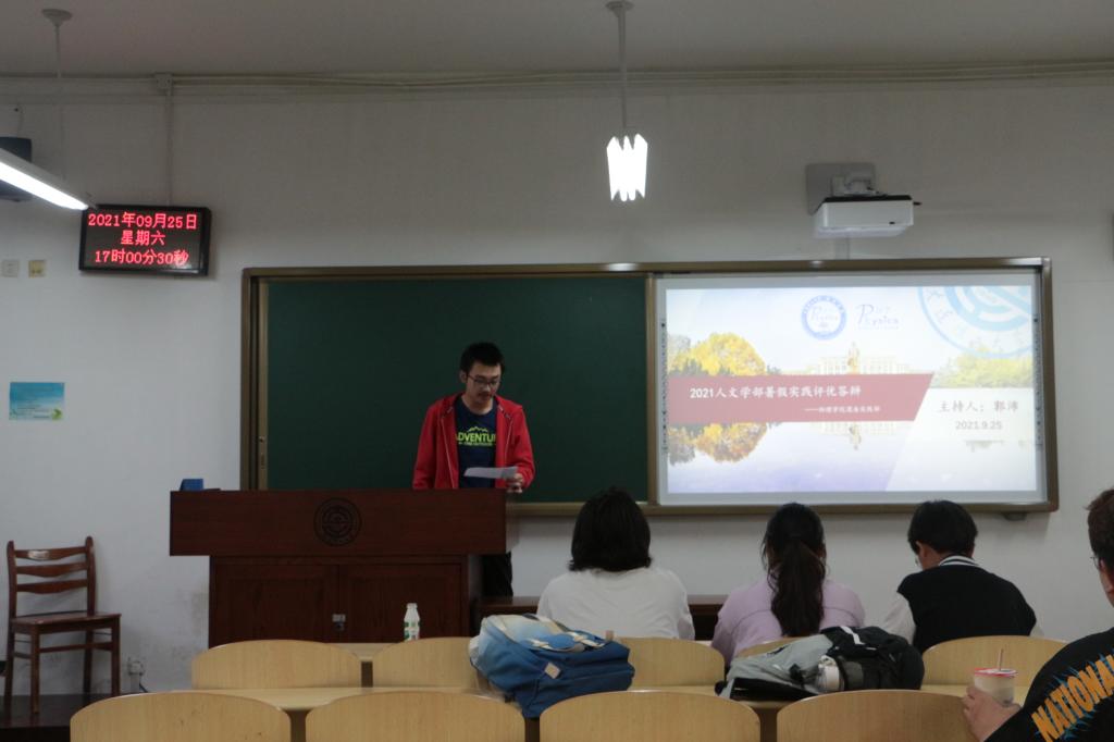 2021年9月25日下午5:00,由物理学院与人文与社会科学学部联合举办的2021年暑假社会实践评优答辩在综一214教室成功举办,本次答辩的主持人为物理学院实践部负责人郭沛,出席本次答辩的评委有物理学院实践部工作人员刑静文,戚佳欣,韩振琦。