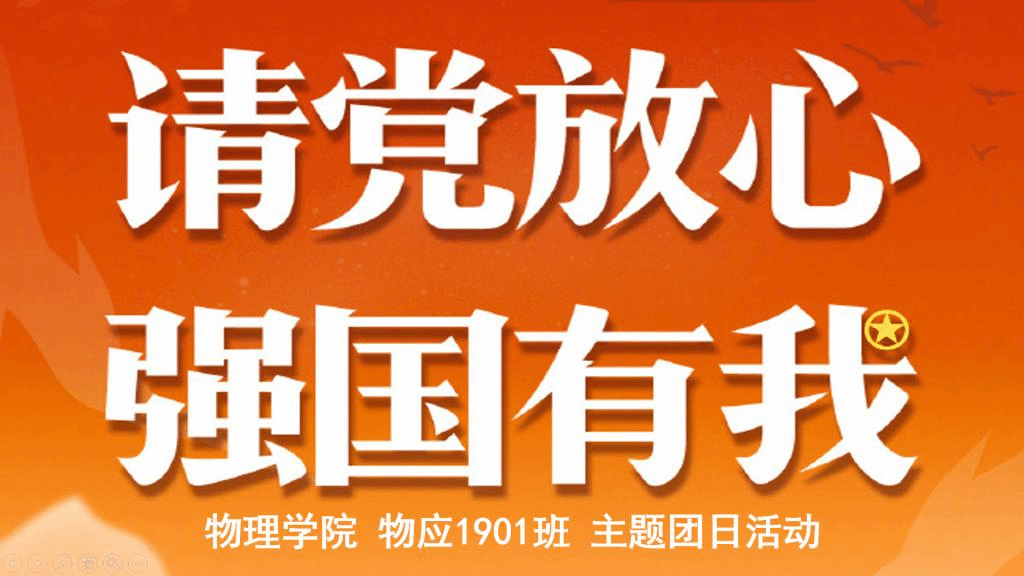 学党史、悟思想、讲担当。10月8日下午15:00,物应1901团支部于材料馆104教室开展“请党放心,强国有我”主题团日活动,本次活动由物应1901班团支书高铭星同学担任主持人。